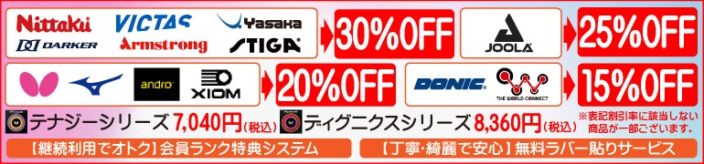 前月の売上ランキングを卓球ラバー、ラケット、ユニフォーム部門でご紹介致します。ただ今掲載中の商品は2025年10月の売上ランキングとなります。